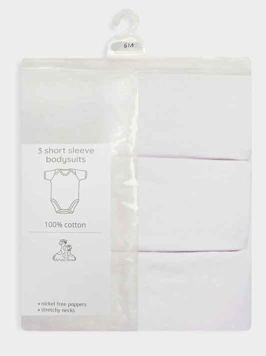 Baby 3 Pack Short Sleeve Bodysuits White