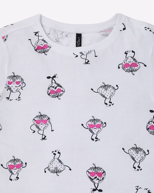 Girls Printed T Shirt White