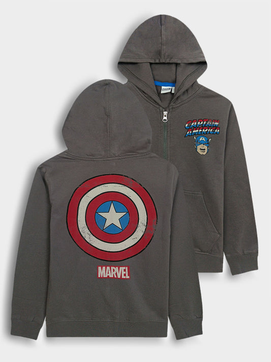 Boys Hooded Full Zipper Grey Sweatshirt