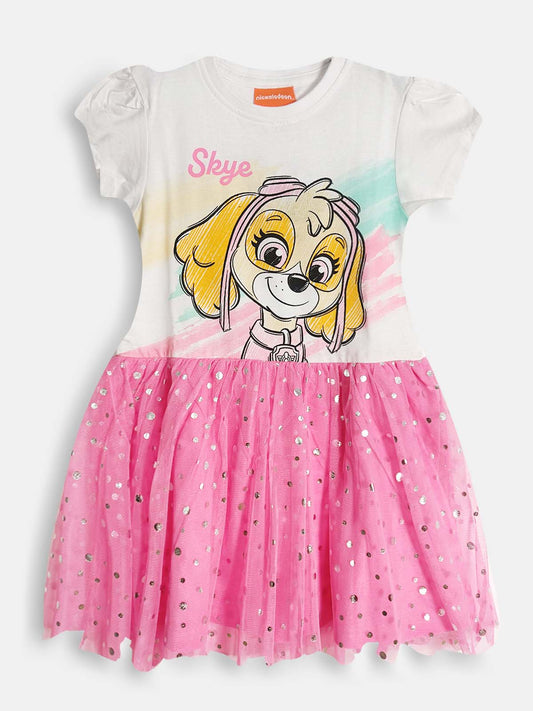 Girls Printed Knit Pink Mesh Dress