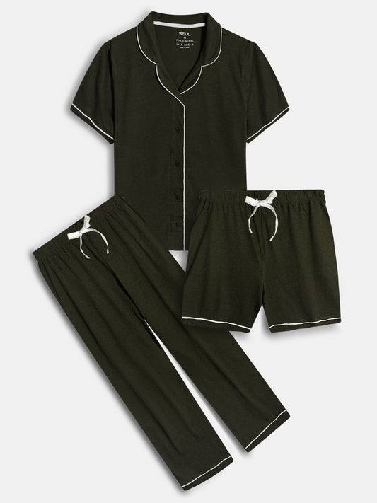 Ladies Sleepwear 3 Pc Set Olive
