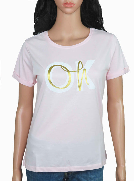 Ladies Printed Baby Pink T Shirt