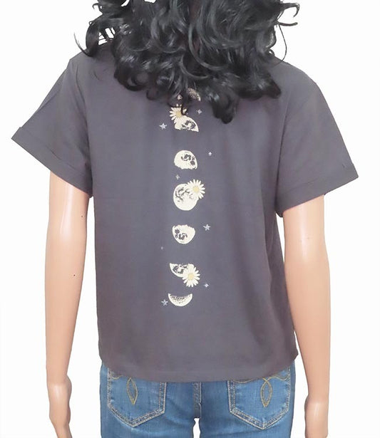 Ladies Printed Crop T Shirt Grey
