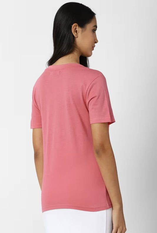 Ladies V Neck Fuchsia T Shirt