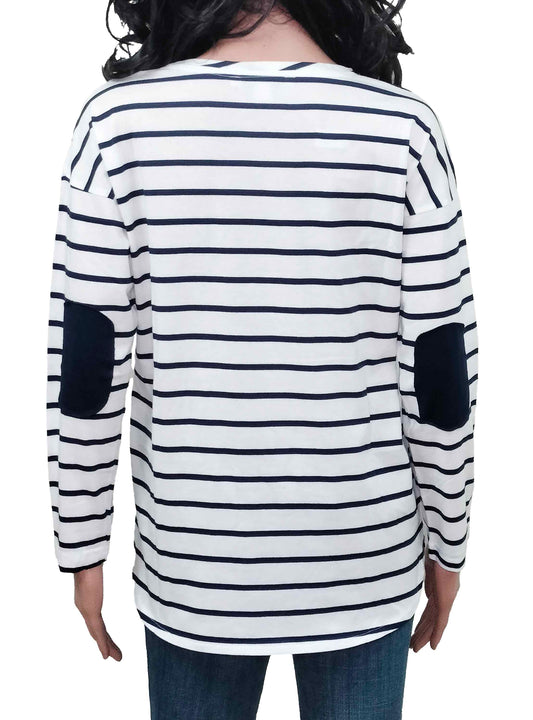 Ladies Striped Long Sleeve White Top