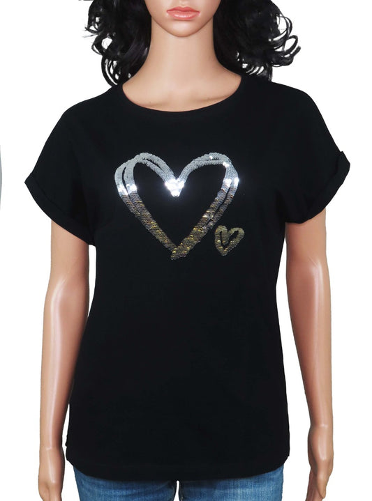 Ladies Sequined Black T-Shirt
