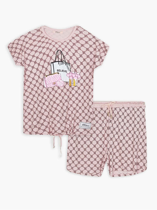 Ladies Printed Baby Pink T Shirt