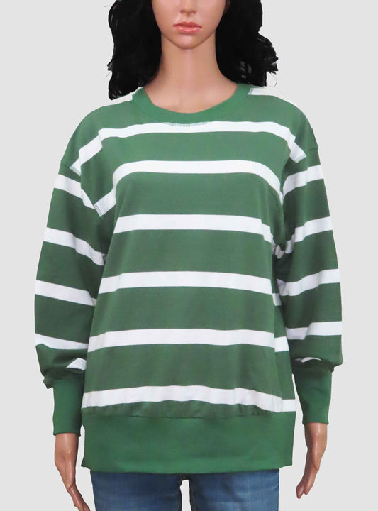 Ladies Striped Pullover Sweatshirt