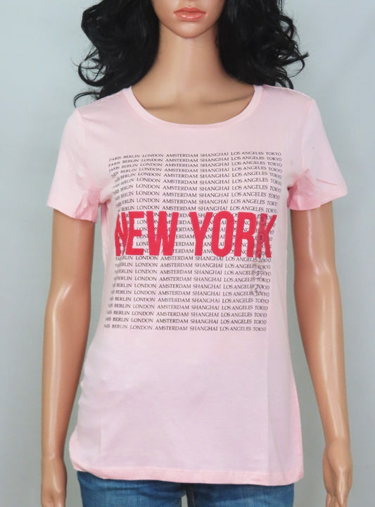 Ladies Printed Pink T Shirt