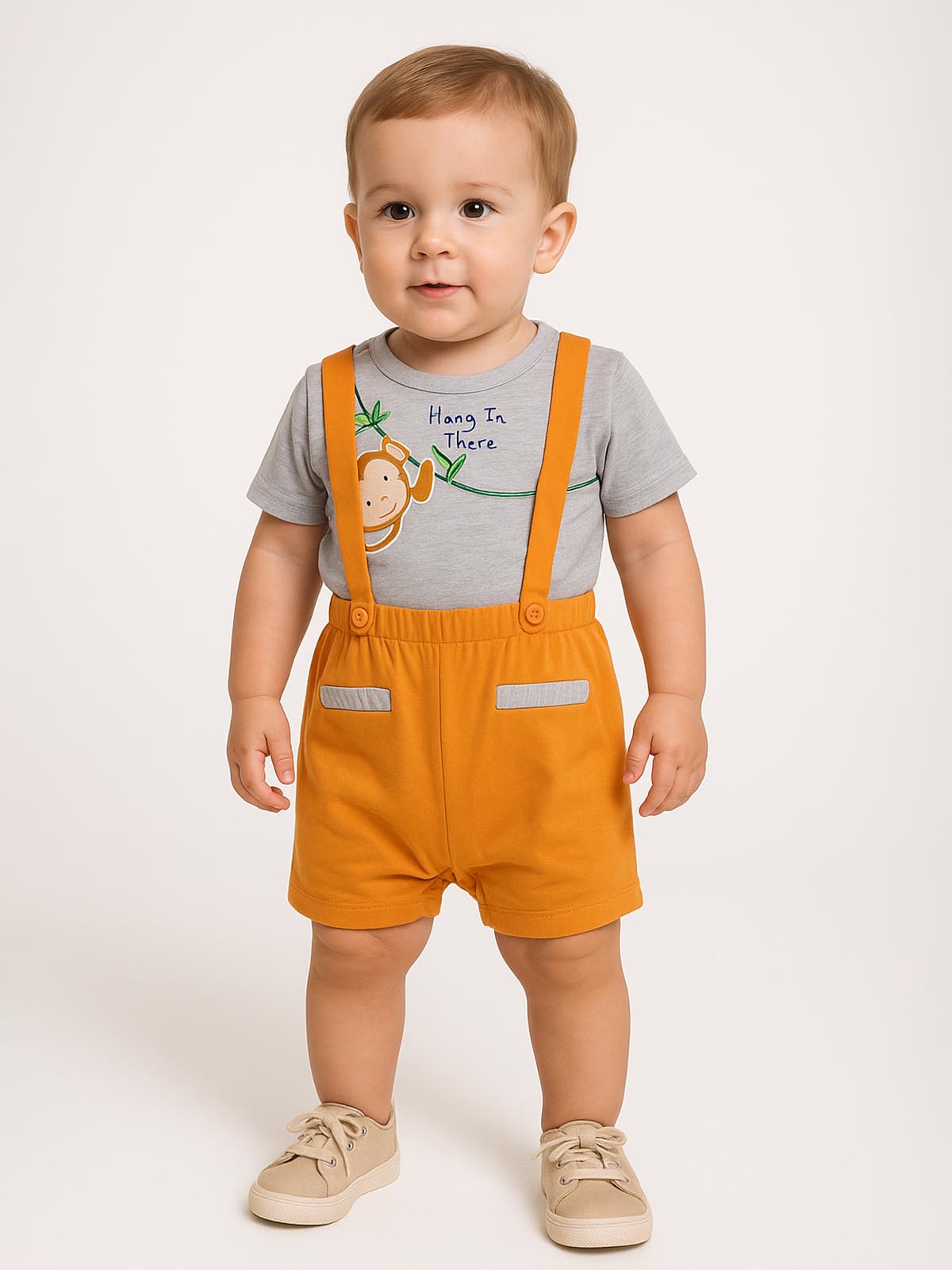 Baby Boys 2 Pc Set Grey Melange/Orange