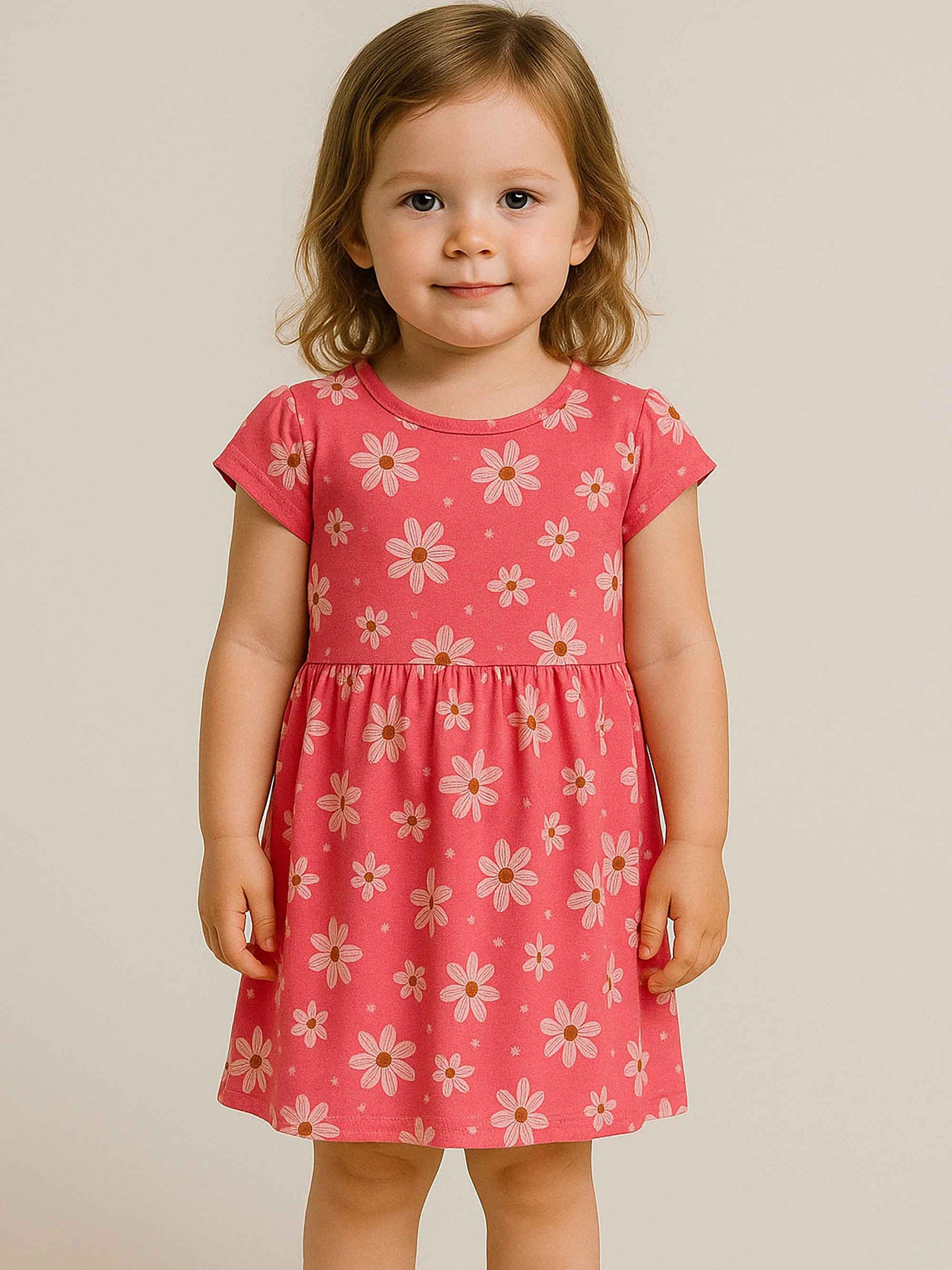Baby Girls Pink Flower Viscose Dress