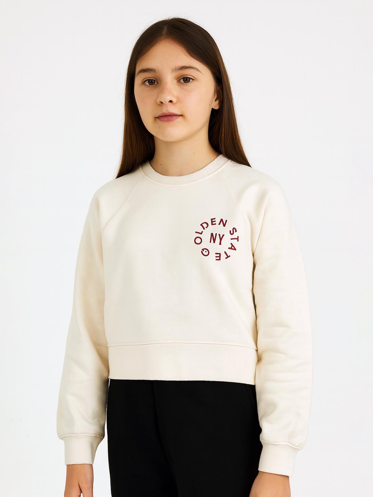 Girls Offwhite Pullover Fleece Sweartshirt