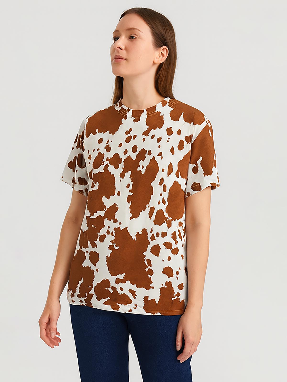 Ladies Brown AOP Top