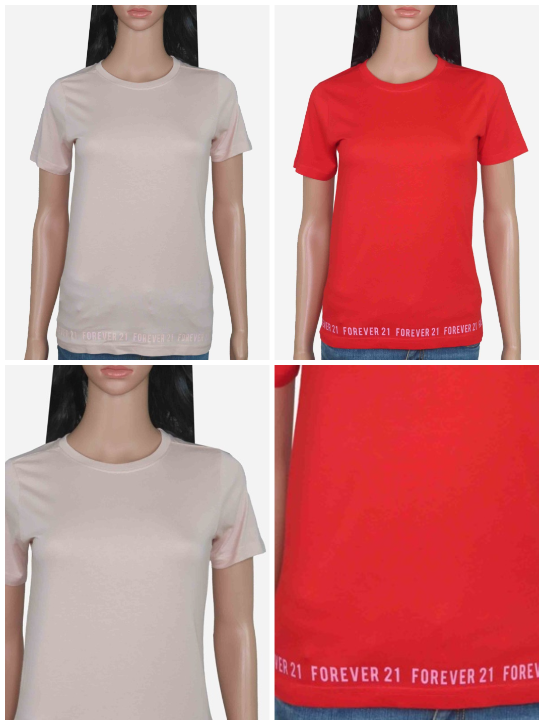 Ladies Crew Neck Red and Beige T Shirts