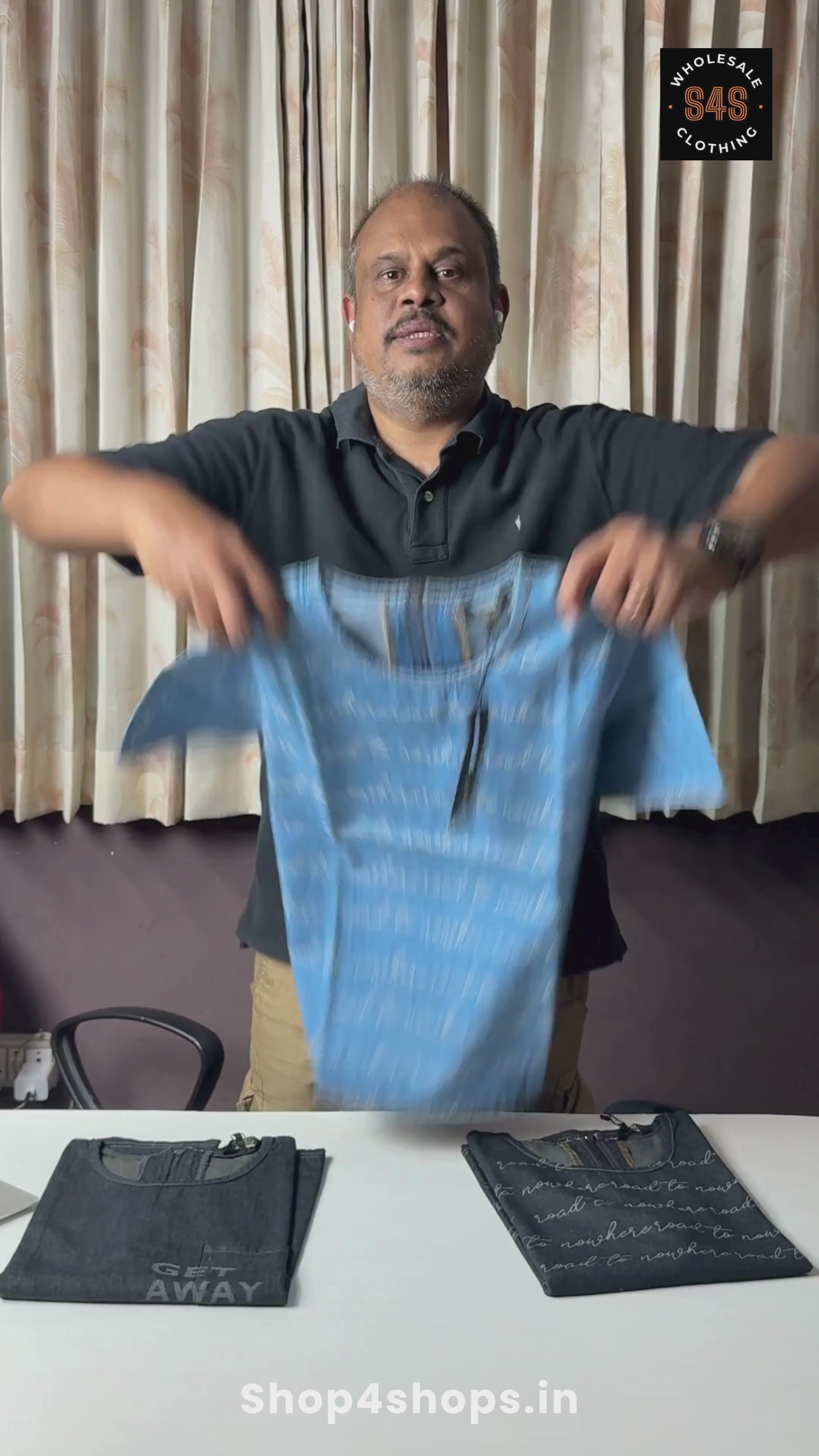 - Wholesale price: ₹275/pc | $3.44/pc — exceptional value for a denim AOP style