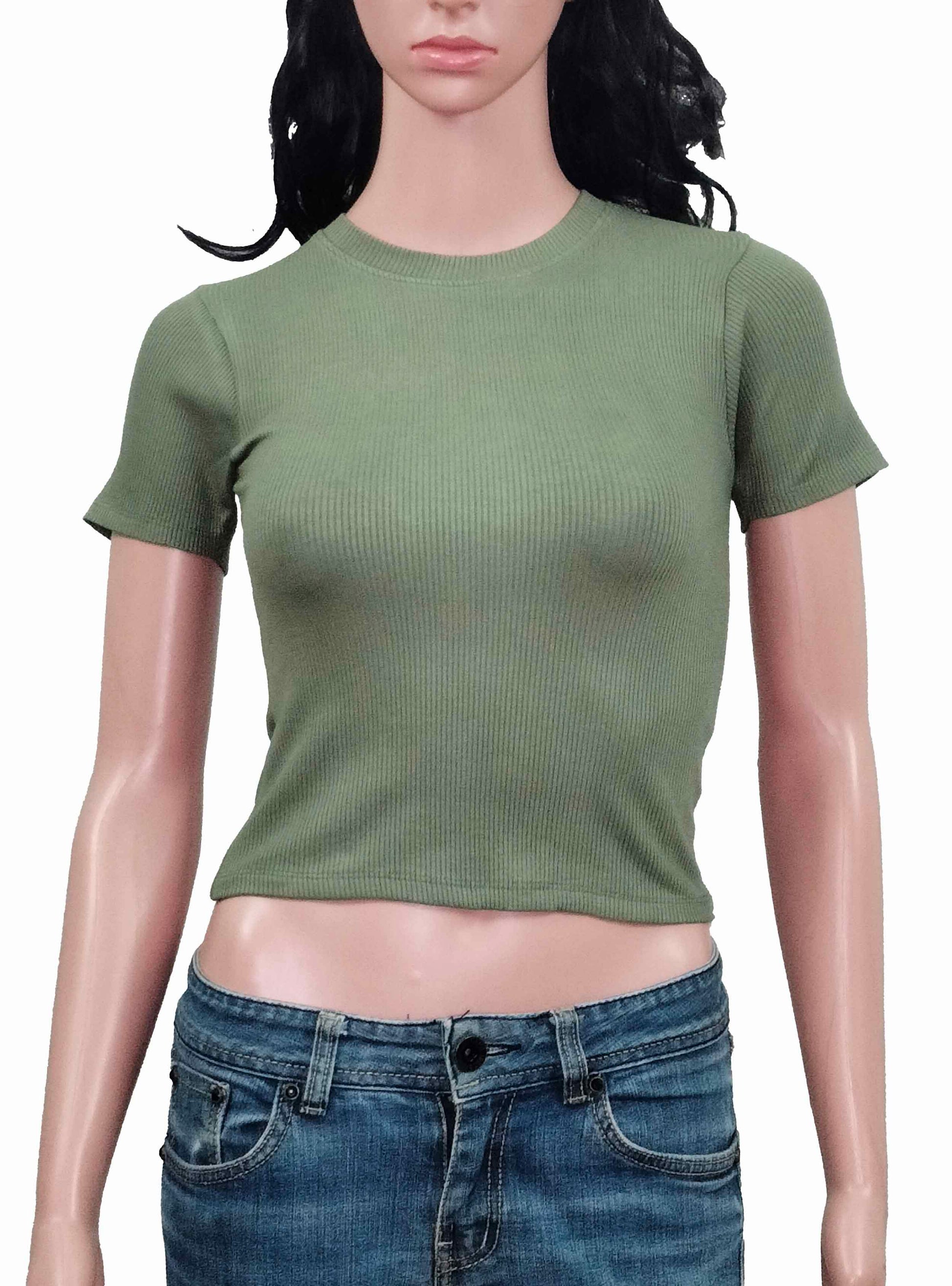 Ladies Viscose Olive Crop Top
