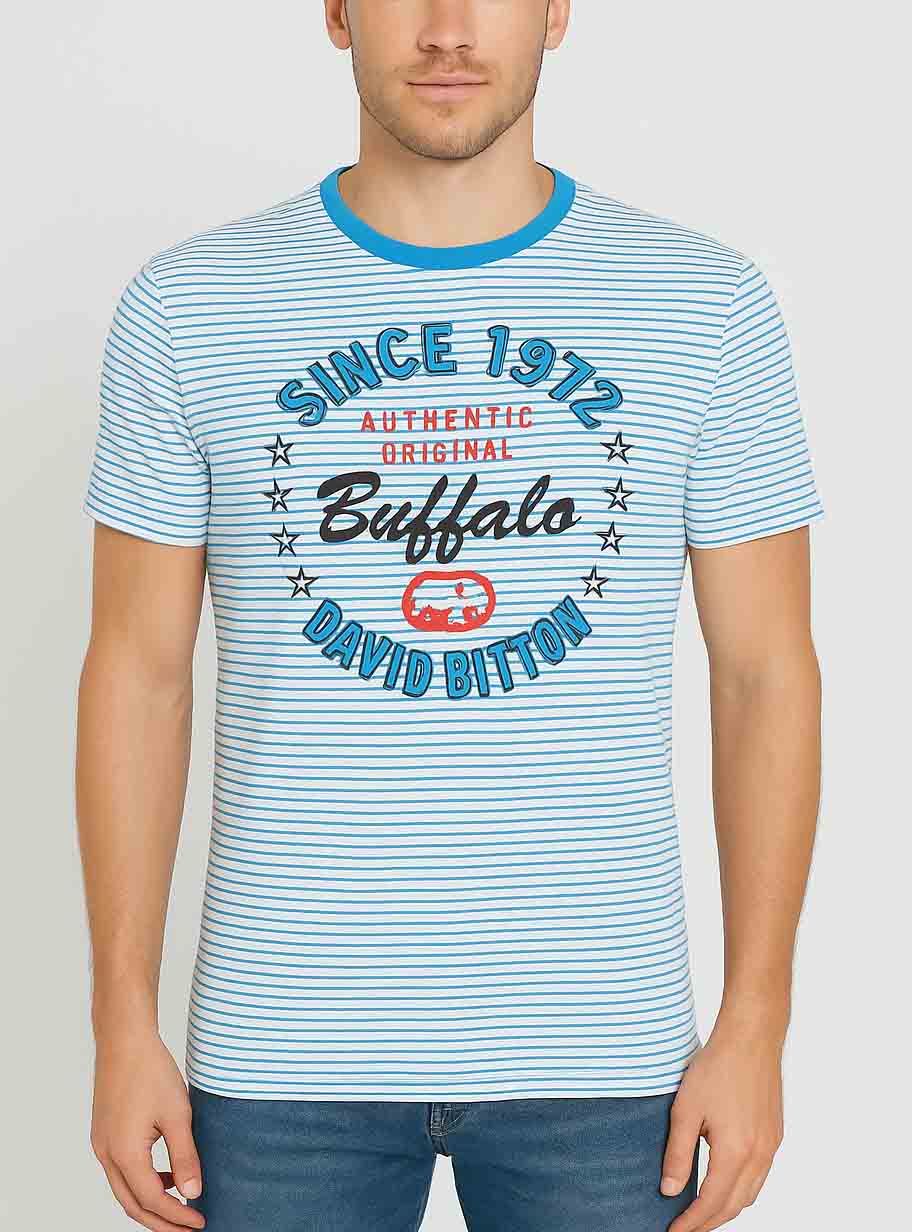 Mens Camo Printed T Shirt White / Blue Striped