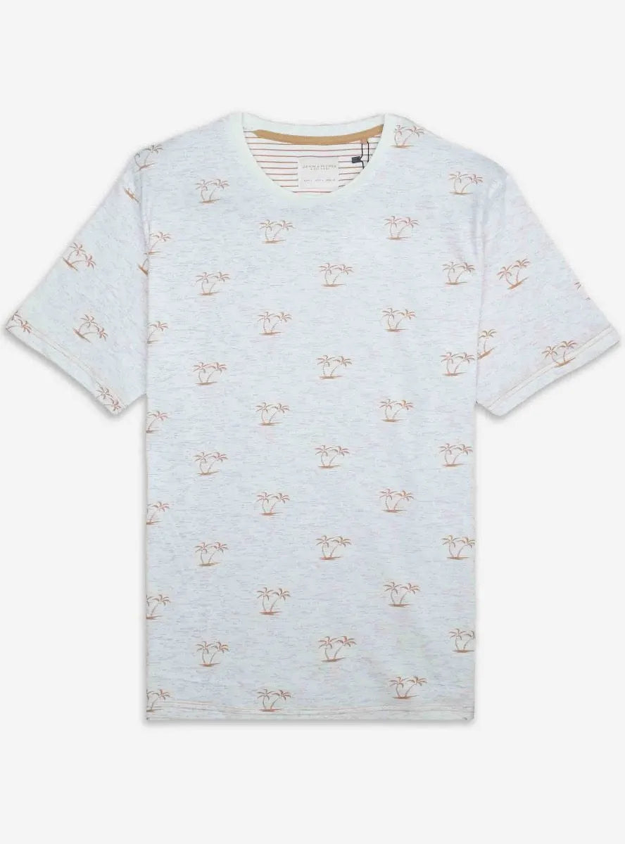 Mens Printed T Shirt Ecru AOP