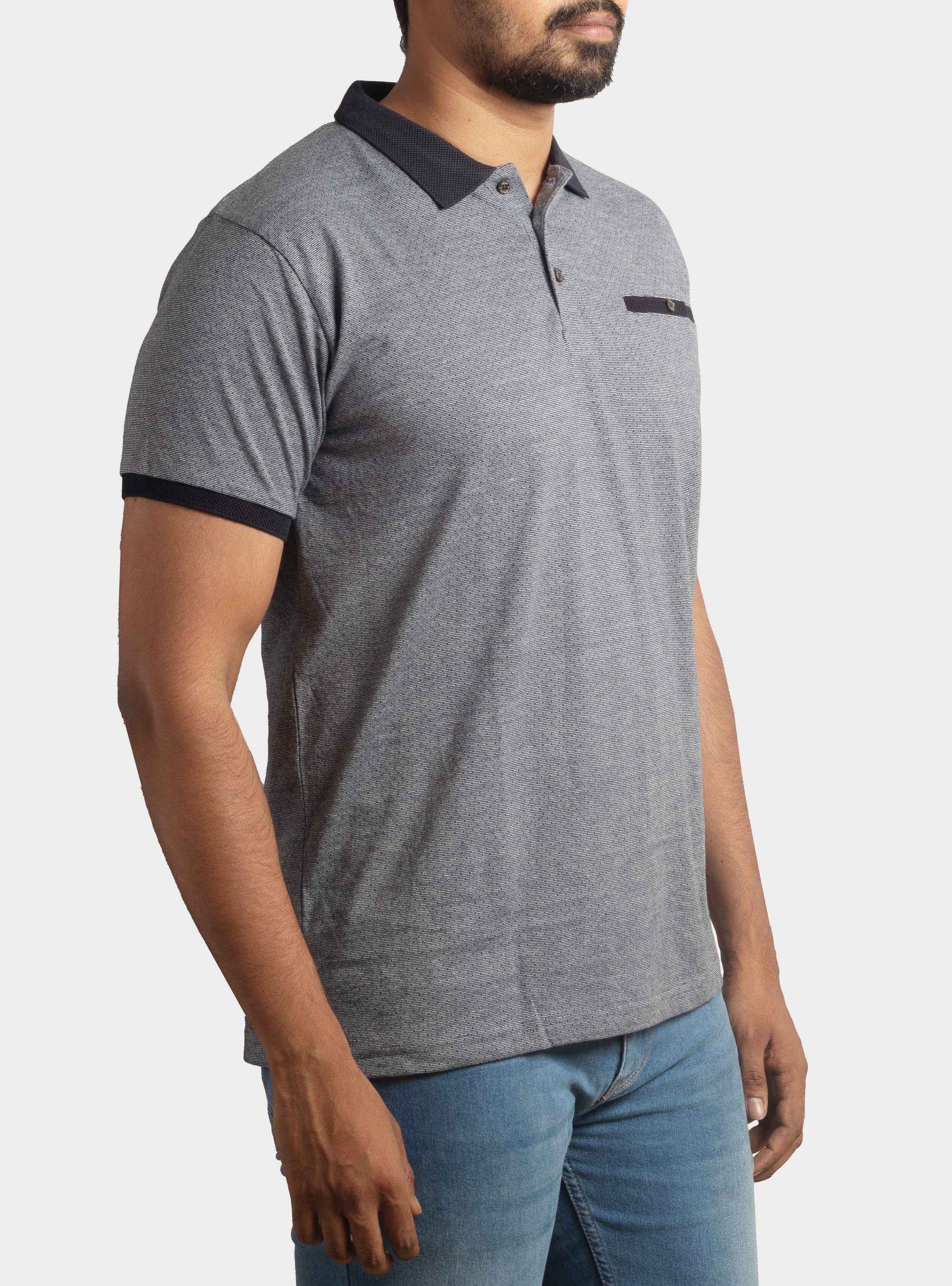 Mens Printed Collar T-Shirt Grey